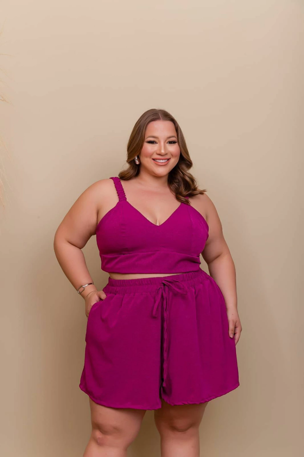 Prepare-se para um toque de cor e estilo com o nosso Conjunto Trio Pink dos Sonhos! Este conjunto vibrante, composto por um kimono elegante, um short confortável e um cropped charmoso, é a definição de versatilidade e atitude para o seu guarda-roupa. Use as peças juntas para um look impactante ou separadamente para criar combinações INCRÍVEIS!